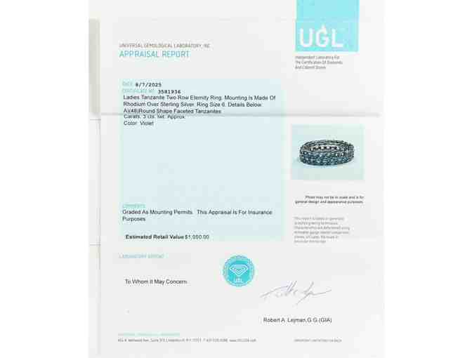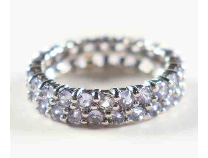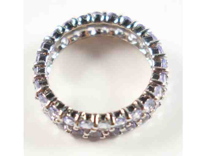 Ladies Tanzanite Two Row Eternity Ring. Mounting Is Made Of Rhodium Over Sterling Silver. Ring Size 6.