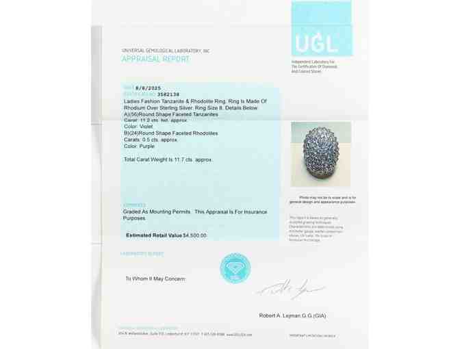 Bid now to win this New 11.7 CTW Tanzanite & Rhodolite Ring