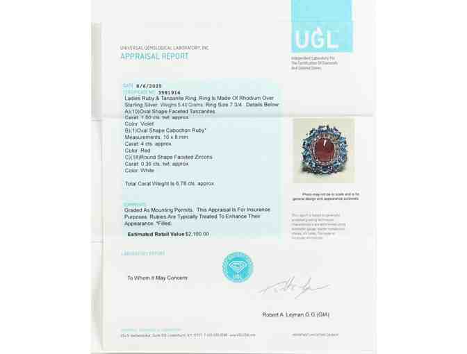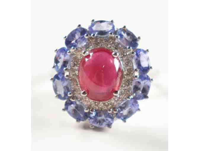 Bid now to win this New 6.78 CTW Ruby & Tanzanite Ring