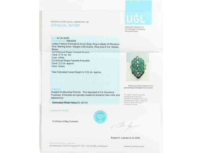 Bid now to win this New 3.22 CTW Emerald & Zircon Ring