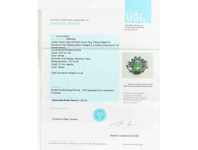 Bid now to win this New 4 CTW Green Opal & White Zircon Ring