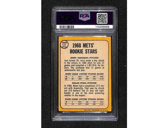 Up for auction is a 1968 Topps Rookie Stars #177 Nolan Ryan RC, one of the most iconic baseball rookie cards ever produced, featuring both Nolan Ryan and Jerry Koosman. This particular example stands out for its bold, clean Nolan Ryan autograph, authenticated and graded PSA 9 Auto (SE1435) for exceptional signature quality. A cornerstone piece for any serious baseball or vintage card collection, it combines historical significance, outstanding presentation, and the signature of one of baseball’s greatest pitchers—a true blue-chip investment-grade collectible.