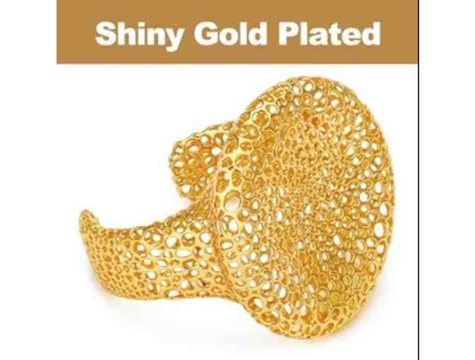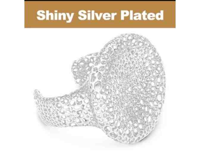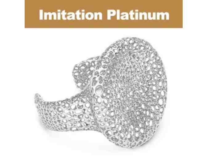 Bid now to win this Platinum-Plated Copper Hollow Floral Filigree Cuff Bracelet One Size Adjustable Silver Tone for Women