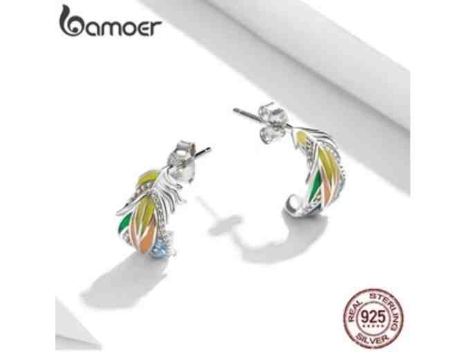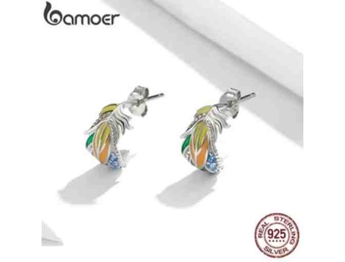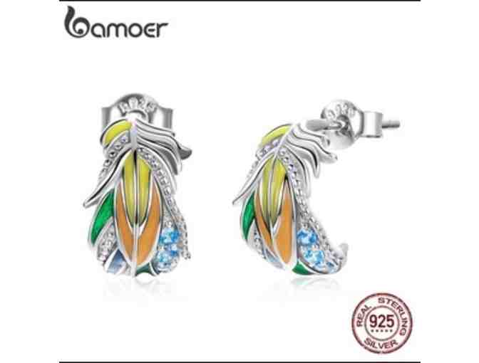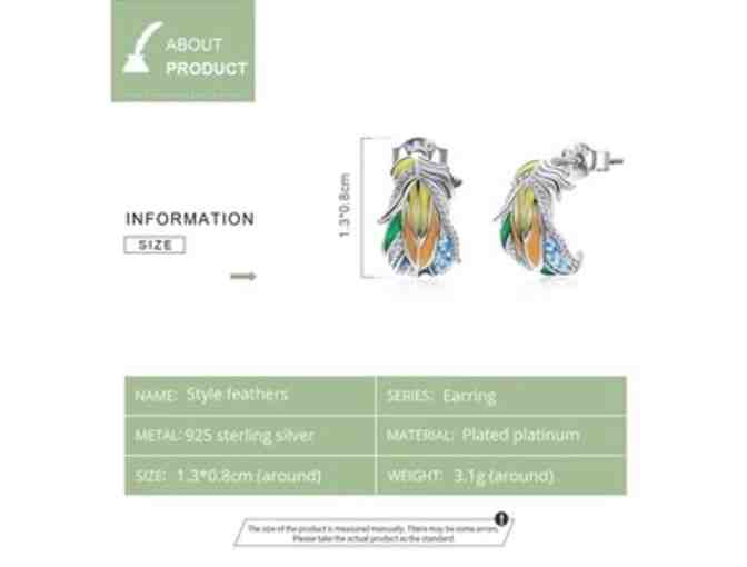 Bid now to win this 925 Sterling Silver Colored Feather Stud Earrings for Women