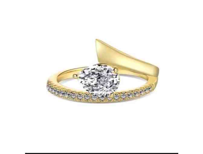 Bid now to win this 925 Sterling Silver 18K Gold Plated Gold-White Lab Sapphire Wedding Ring Size 5 for Women