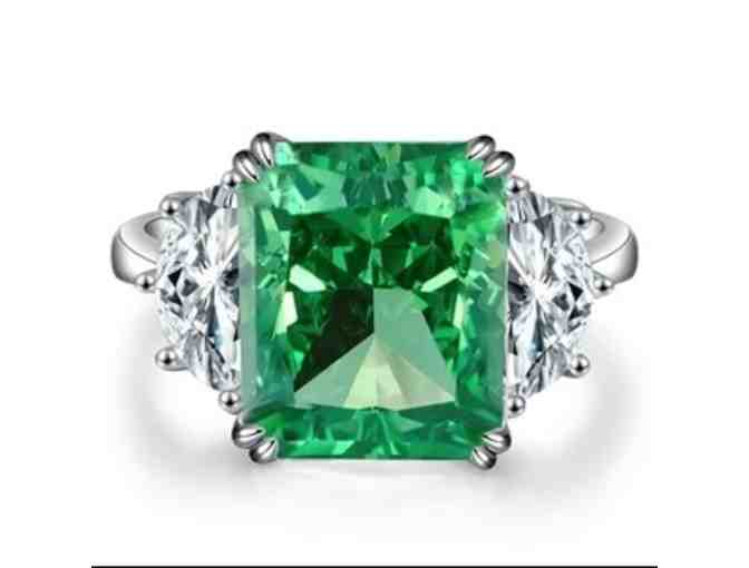 Bid now to win this 925 Sterling Silver 9CT Lab Emerald Crushed Ice Cut Ring Size 5 for Women