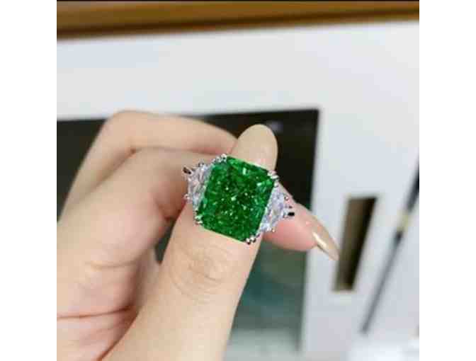 Up for auction is a stunning 925 Sterling Silver ring featuring a 9CT lab-created emerald with a dazzling crushed ice cut design, perfectly crafted to catch the light from every angle. This elegant piece, designed for women, comes in size 5 and combines the timeless allure of sterling silver with the vibrant, rich green of a lab-grown emerald. Ideal for both everyday wear and special occasions, this ring is a sophisticated addition to any jewelry collection and makes a perfect gift for someone special.