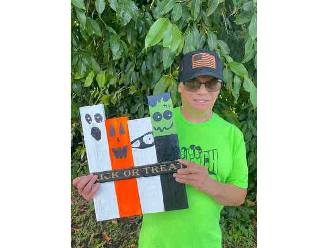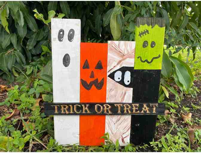 Say hello to The Boo Crew — a cheerful lineup of a ghost, pumpkin, mummy, and Frankenstein, handcrafted by the LARC Woodshop Crew. Fun, festive, and full of personality, each piece is cut, painted, and finished by hand, making every set a one-of-a-kind Halloween keepsake. Sweetly spooky and made with love, this décor brings charm to any shelf, desk, or entryway. 16"x15"