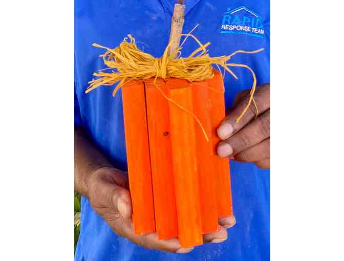 Each pumpkin is handcrafted in LARC’s Woodshop and finished with colorful ribbon and personality to match. No two are alike — just like the remarkable individuals who made them. Perfect for mantels, desks, shelves, or gifting a little fall cheer.