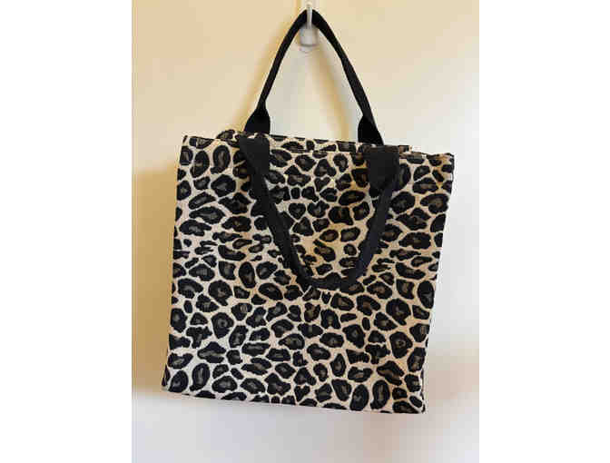 HEAVY COTTON CANVAS ZIPPERED TOTE IN LEOPARD PRINT
