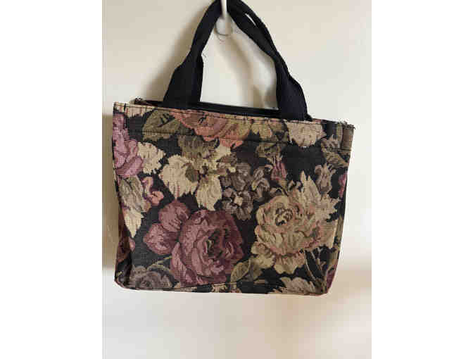 COTTON CANVAS TOTE WITH FLORAL TAPESTRY BACKGROUND