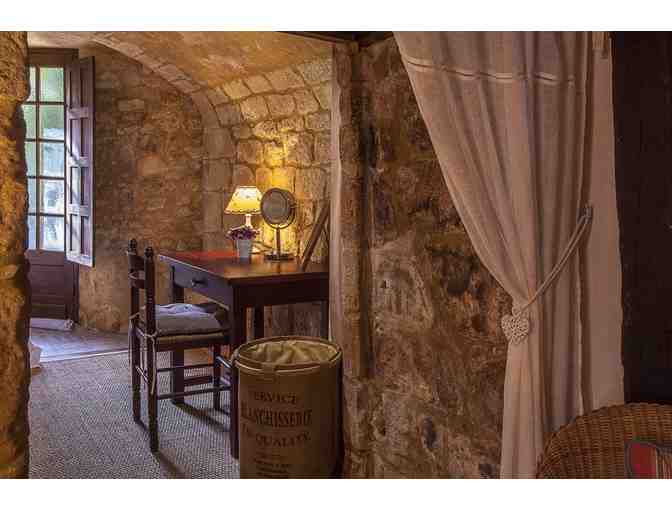 On the mid-level of this three-story house, one enters through a rustic wooden door set into the thick, ochre-colored stonewalls onto a private courtyard. This leads to the entrance of the the home through your completely remodeled kitchen with massive stone fireplace ("cantou") that now houses a wood stove, a long dining table, a new cooking range, and an American style refrigerator. The kitchen is completely equipped for convenient meal preparation.