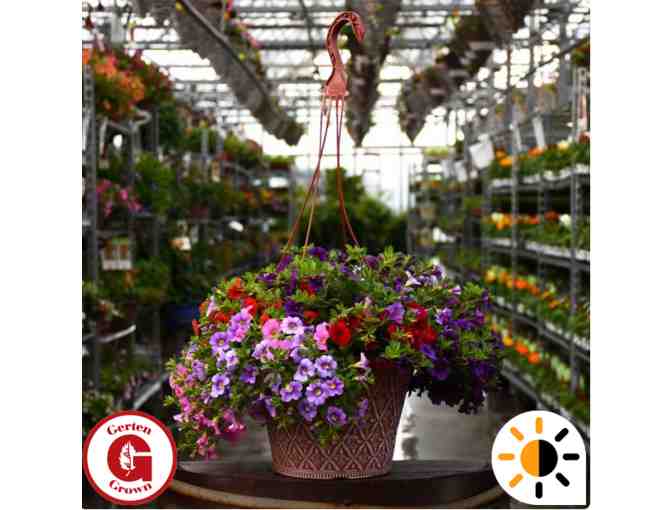 All Gerten Grown planters include water saving gel and fertilizer for season long blooms and baskets that dry out less.