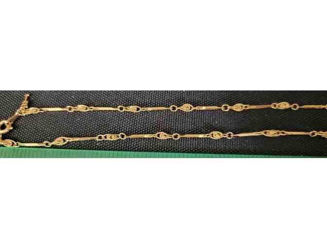 Vintage 90s gold plated necklace alternating bar and knot links 14 inches