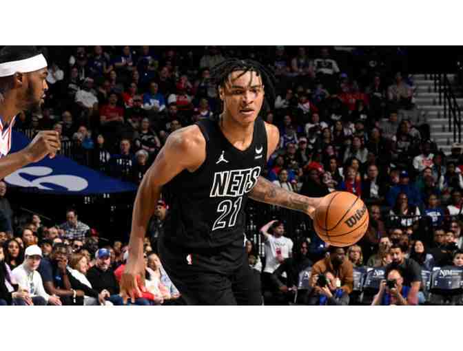 Orange and white basketball signed by Brooklyn Nets player Noah Clowney AND two (2) game tickets to a current season Brooklyn Nets game.