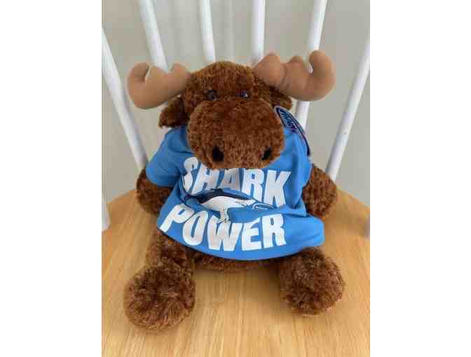 Adorable "Merry Chris-MOOSE"! Brand new with Tags - and wearing a cute "SHARK POWER" T-Shirt. Item can be shipped nationwide to Winning Bidder - or picked up for FREE in Enfield, CT.