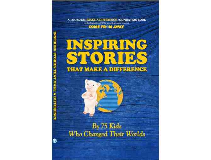 Receive 10 signed books including 5 copies of The Loukoumi Foundation's book with the award winning musical "Come From Away" titles Inspiring Stories That Make A Difference and 5 signed copies of Inspiring Stories That Make A Difference 2. Each book personalized to the recipients you would like to give them to. Books retail price $19.95 each.