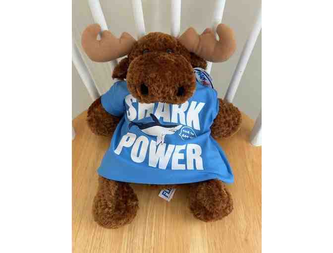 Adorable "Merry Chris-MOOSE"! Brand new with Tags - and wearing a cute "SHARK POWER" T-Shirt. Item can be shipped nationwide to Winning Bidder - or picked up for FREE in Enfield, CT.
