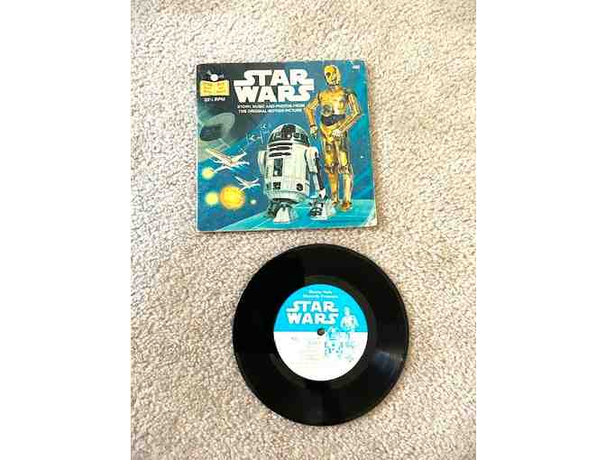 Rarely offered: Own a piece of STAR WARS HISTORY! Original 1979 Star Wars "Read-Along Book" and Record Set. The 24-Page Paperback book tells the story of the Original Movie (now known as "Episode IV") with high-quality Color Photos and a vintage 33 1/3 RPM Record to match the storytelling. (Word-for-word narration, dramatic dialogue, authentic sound effects.) Excellent condition: Record appears to have never been played (no scratches). Item can be shipped nationwide to Winning Bidder (with insurance) or picked up for FREE in Enfield, CT after the Auction. Perfect for any Sci-Fi Fan!