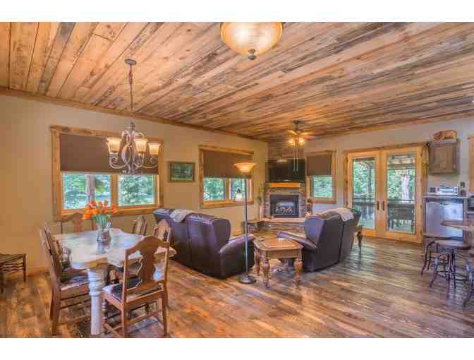 Escape to your 5-night stay for up to 8 guests in a stunning 4-bedroom, 3,000 sq. ft. upscale rustic cabin perched along the trophy trout waters of the Watauga River. Blending reclaimed barn wood charm with modern luxury, this handcrafted lodge features a gourmet kitchen, spacious living areas, and a serene back deck with a stone fireplace overlooking the river. Step outside to fish, kayak, or simply soak in the mountain air — and enjoy an unforgettable private fly-fishing guide for two, included with your stay. Whether gathering by the fire or casting into crystal-clear waters, this one-of-a-kind retreat invites you to relax, reconnect, and reel in lasting memories.