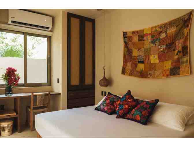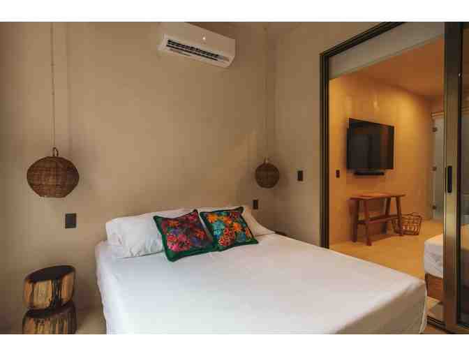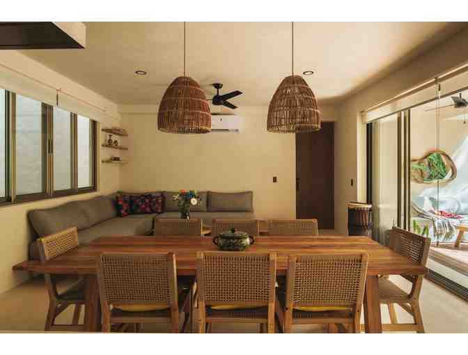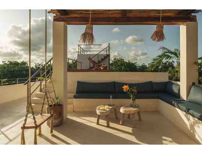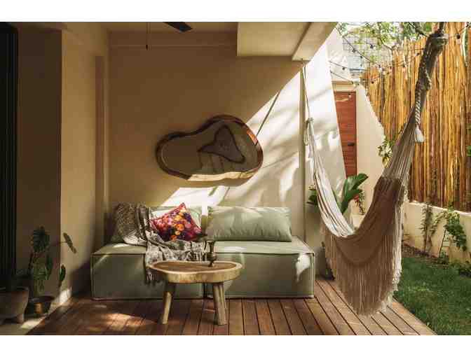 Bid now for a 5 night escape to a true jungle sanctuary in the heart of Tulum. This designer 4-bedroom, 2-bath retreat accommodates up to 8 guests and offers the perfect blend of modern luxury and lush surroundings. Enjoy a private terrace with hammock, swing, and soaking tub, a chef’s kitchen with premium appliances, and shared access to a rooftop pool with panoramic jungle views. With concierge service, gated privacy, and easy access to Tulum’s world-class beach clubs, this is the ultimate tropical getaway for families or groups seeking comfort, style, and adventure.