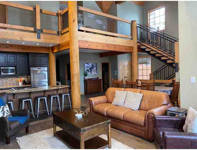 Escape to 4,000 square feet of mountain luxury in this beautifully crafted timber frame chalet, featuring 25-foot ceilings, three spacious living rooms, two gas fireplaces, a wet bar, and a large 8-person hot tub.