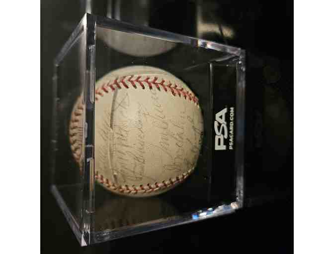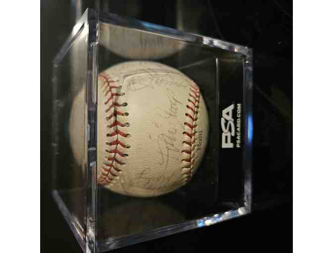 This baseball has signatures from the 1973 New York Mets. There is a COA for both Willie Mays and Tom Seaver's autographs.