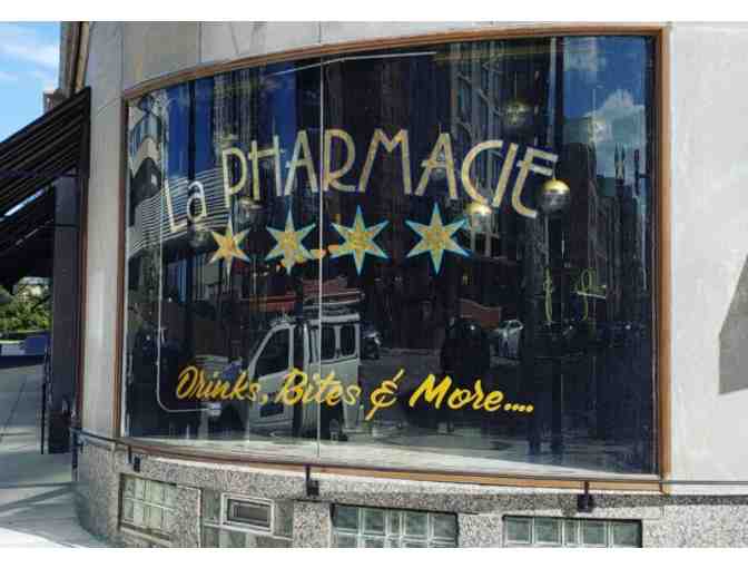 This auction item includes a $50 Gift Card that may be used toward food and drink at La Pharmacie’s Edgewater location.