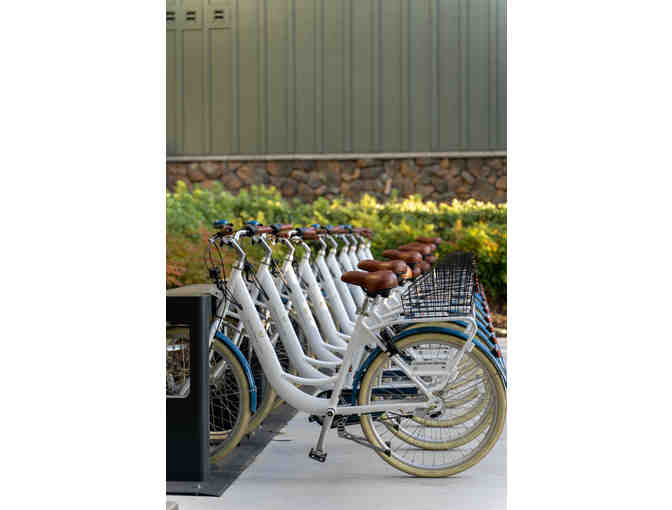 Enjoy access to the Destination Delights program, offering special discounts at participating local wineries and businesses, a welcome splash of local wine, and on-site self-parking (a $30 value). Additional amenities include complimentary bottled water at the front desk, the first hour of bike rental (a $20 value), and 24/7 access to the fitness center, featuring Peloton classes and water refill stations.
