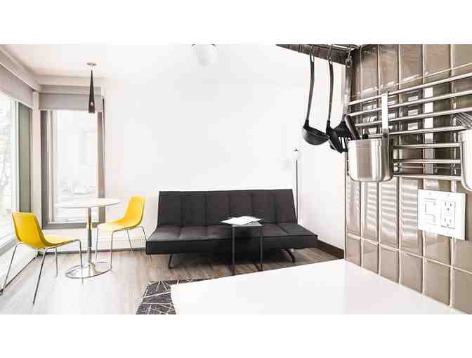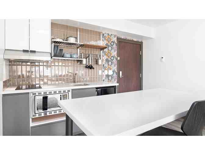 Every room features amenities you won’t find in a traditional hotel, too, including cable and Internet television with premium channels, soft, 450-thread count sheets, and free high-speed Internet access.