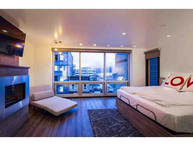 - Access to rooftop deck with hot tubs, fire pits, and mountain views