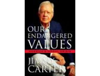 "Our Endangered Values - America's Moral Crisis", by Jimmy Carter. This is a signed copy of the ex-President's recent book presenting his unique perspective on international politics. A collector's item!