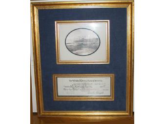 Orville Wright (1871-1948) was an American Aviator and co-inventor of the airplane (1903). His full signature is featured on this check, dated April 30, 1937, from "The Winters Bank & Trust Co.," of Dayton, Ohio. This is a very clear signature and a scarce piece of Americana. Framed with the signed check is a print of the famous plane that Orville Wright flew, creating a most desired collectible.