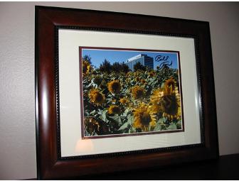 Photo of Ford WHQ with sunflowers in foreground, signed by Bill Ford. 8X10 photo, double matted and beautifully framed. Overall measurement 11"x14".