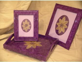 Two Hand-Crafted Frames & One Tray with Pressed Flowers