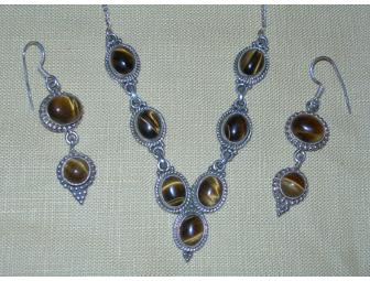 Beautiful Silver and Tiger Eye Necklace and Earring Set