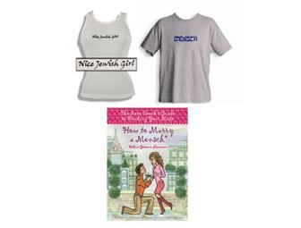 Are you a SJF (Single Jewish Female) looking for Mr. Right? Well, if so, this set of items from ChosenCouture.com is for you! First, you'll have to put on your "Nice Jewish Girl" tank so that all those eligible men will know just who they're dealing with. Next, you'll have to find that perfect mensch who your mother and grandmother insist is out there somewhere. Just pick up the "How to Marry a Mensch" book which is full of witty tips on where to find a mensch, how to woo him, and what to do when you have the ring on your finger. And once you've found that special someone and confirmed that he is truly YOUR mensch, reward him with his very own "Mensch" t-shirt. Bid now for all that you'll need to live happily ever after!