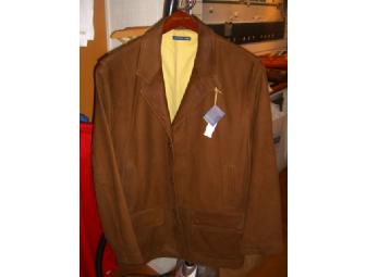 This luxurious men's outwerwear garment is manufactured by McKenzie Tribe of Long Island, NY. It is called the Hamilton and its color is cognac. The goatskin coat has a cashmere/wool lining. Winning bidder may choose zize from medium, large or extra large. This coat is sold exclusively at fine men's shops like Barney's, Fred Siegal and Circa '46 (owned by Bill Cebak '80).