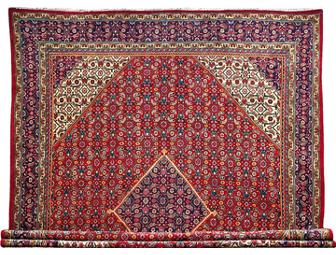 Made in Mahal, Iran, this 9'9" by 12'11" rug is hand woven on a cotton foundation; all the knots are hand tied. Someone spent about a year making this rug by hand. The rug is in excellent condition and was recently professionally cleaned.