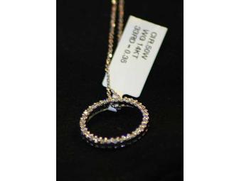 .35 ct. t.w. diamond pendant with 16" 14kt white gold wheat link chain. (FG color and SI clarity).