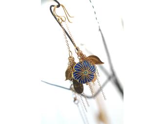 Dark blue cloisonne flower earrings with gold-filled components and earwires.