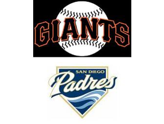 4 GIANTS tickets - Field Club level, Section 115, Row G, Seats 1-4 PLUS $100 - Monday, June 25th 7:15pm game vs. San Diego. Sit with the scouts, 7 rows behind home plate! Four seats on the aisle. Includes a parking pass for Lot A. And, no trip to the ballpark is complete without beverages and peanuts ... $100 cash included to get your evening started right.