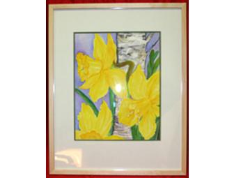 Brilliant yellow daffodils on a spring day, framed in a natural lightweight maple frame by our own talented artist & teacher Ute Goggins.