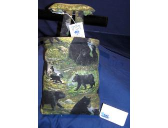 Multi-use bag makes a great trash bag, remote control holder, knitting bag and more. Attached non-slip weight keeps bag in place. Made in Maine by one of our Homecoming Craft Fair vendors. Dimensions are 9" high x 14" circumferance.