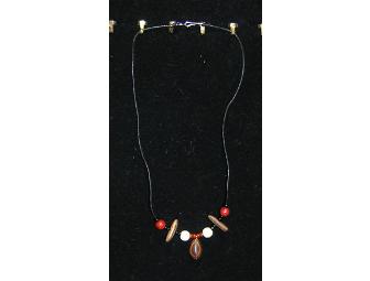 This unique organic necklace is made from seeds and tagua nut beads strung on an 18" cord. Gathered from the rain forest, the tagua beads are hand carved from the ivory-like nut of the tagua tree. The nuts and seed beads are a renewable resource that are harvested without damaging the trees and are part of a program to protect endangered rain forests.
