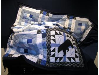 Another one-of-a-kind creation from Barbara Potts, this quilt measures approximately 72" long by 52" wide and features a Black Bear in the lower right corner square. Cuddle in cozy comfort!!