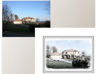 Transform your vintage or digital photo into a home portrait beautifully rendered in a classic pen & ink style on subtly-textured, fine art paper. Prints from contemporary homes typically created with a color-wash; older photos often sepia-tinted. Whether it's your home, ancestral homestead or vacation cottage, we will work with your photo to bring out its unique charm.