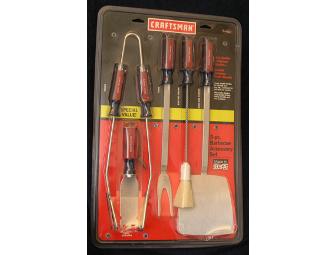 This 5-piece set includes tongs, fork, basting brush, king size turner and grill scraper made from durable stainless steel with high quality Craftsman handles.
