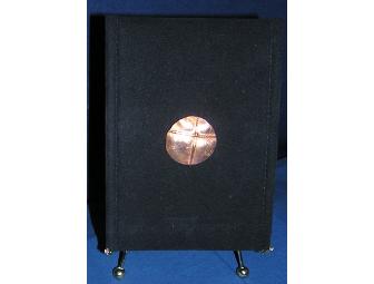 Hand-made, one-of-a-kind copper broach, numbered and signed by the artist. The metal has a natural patina that accentuates the design as it is enjoyed over time by the wearer. This piece is created through heating, folding and hammering the metal and then finished by soldering in place a hand-crafted sterling pin backing.