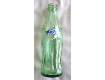 This is a like-new University of Maine Coca-Cola Classic bottle made to commemorate the Black Bears as the 1993 NCAA Division 1 Hockey Champions. It is an 8 oz. bottle in classic Coke shape with light green glass and 10 panels. Across the neck, in white letters: "University of Maine Black Bears". On the side panel: "Team Maine" with a bear-head logo. Next to the logo: "1993 NCAA Division 1 Champions". The reverse side of the bottle has the Coca-Cola CLASSIC emblem, with ribbon, in white. The bottom has no markings other than a knurled ring on the outer edge of the bottom. It is in excellent condition with no cracks, dings, or chips. There are a couple of original very tiny, blue paint defects spots over the bear's eye. Not a problem, but just to point out the detail. (See the photo).